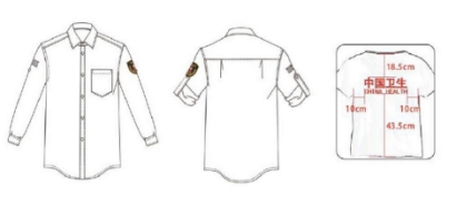 夏裝——白色襯衫和專用藍色褲子搭配設計,襯衫袖內(nèi)設寶劍袢,可挽起做短袖使用。圓領衫采用棉質(zhì)材料,背部中上方標識為(中國衛(wèi)生CHINA HEALTH)。