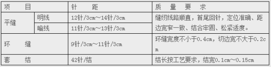 各部位縫紉針距應符合下表規(guī)定。