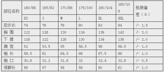 五、衛(wèi)生應急服裝廠家的成品尺寸規(guī)格表